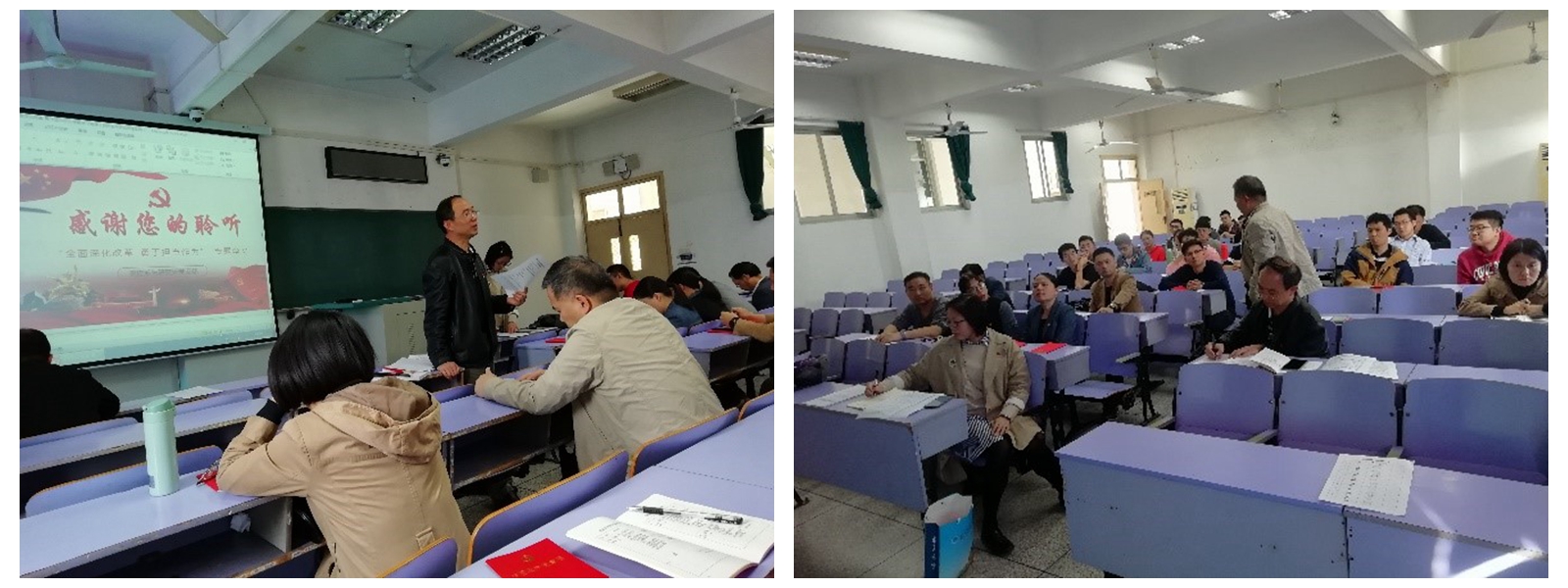 首先,在测控系及研究所党支部书记晋芳同志的组织下,全体党员重温入党誓词,教师党员代表袁艳同志和学生党员代表朱春源同志诵读党章第三章,带领大家学习“党的中央组织”,并缴纳了201910月的党费。