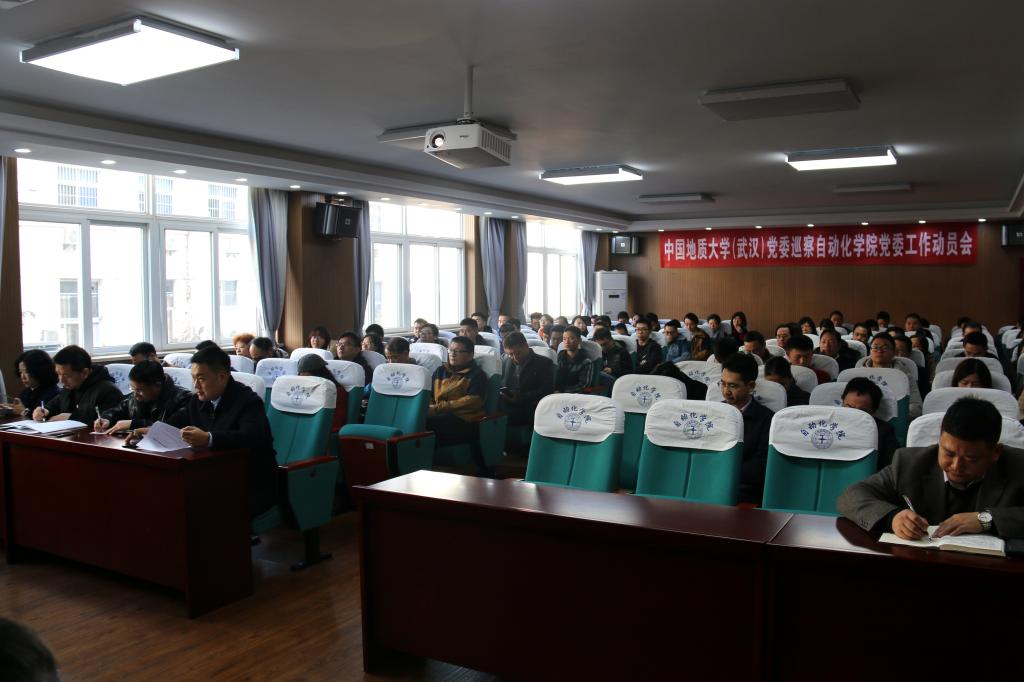 2019年12月11日上午11:00,成人色情 (武汉)党委巡察成人色情 党委工作动员会在成人色情 信息楼310报告厅召开。学校党委副书记、学校党委巡察工作领导小组副组长唐辉明,学校党委第四巡查组成员张基得、范陆薇、胡兰兰、李正汉、宋干锋,学院全体教职工、离退休老同志代表、学生代表等近90人参加会议。院长吴敏主持会