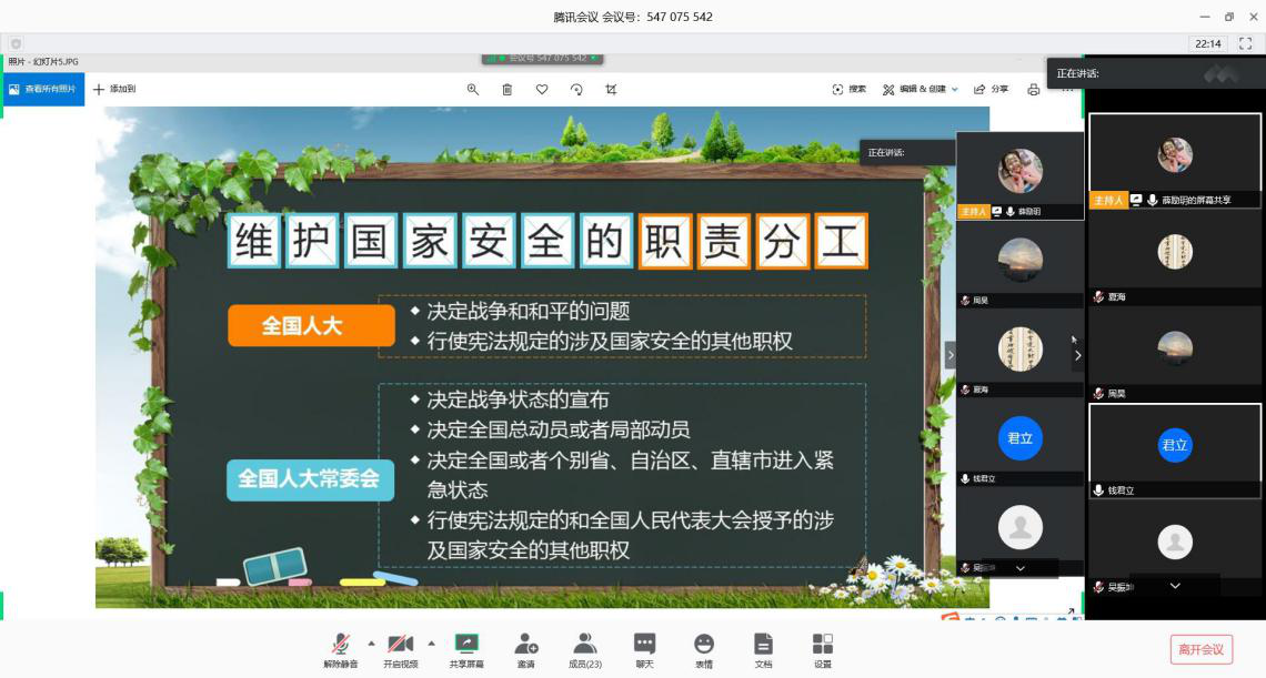 谢科友同志说道:“通过此次主题党日学习活动,我对于国家安全知识的概念和重要性有了较基本的认知。同时在疫情时期,时至今日我们众志成城取得了较大的成果,但是我们仍不能有所松懈,更要及时关注身边的事物变化,做好及时的应对工作,防范于未然。”程军同志说道:“关于最近的疫情,无论是国外媒体,还是中国的社交平台,我们都可以看到很多不正当,极端的言论,这其中有些是由于无心者的恐慌,而有些就是有心者,分裂分子故意为之,这些言论对于网络安全,国家安全带来了严峻挑战。我们普通人应该要树立正确的国家安全观,网络安全观,不造谣,不传谣,理性看待网上的各种言论,为国家安全做出自己力所能及的贡献。”