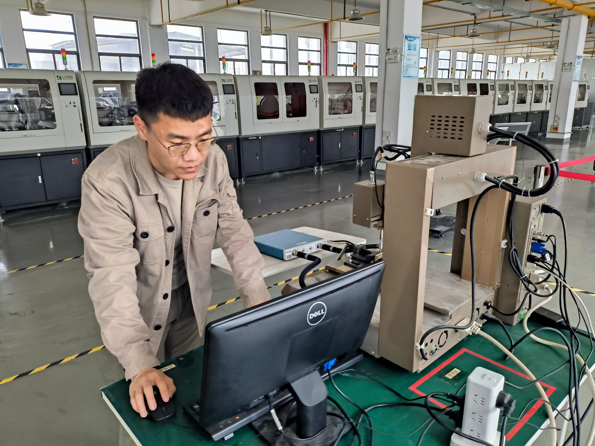 毕乐宇深入工厂生产一线测试智能调试设备