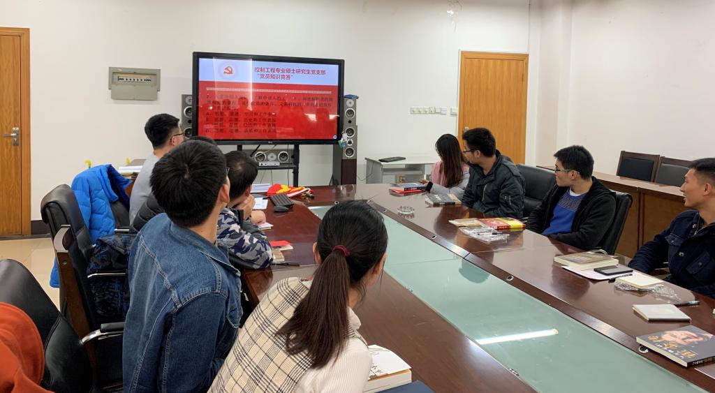 控制工程专业硕士研究生党支部在信息楼603会议室开展“党员知识竞答”及“教室清洁志愿服务”活动,党支部20余名党员和入党积极分子参加了活动。