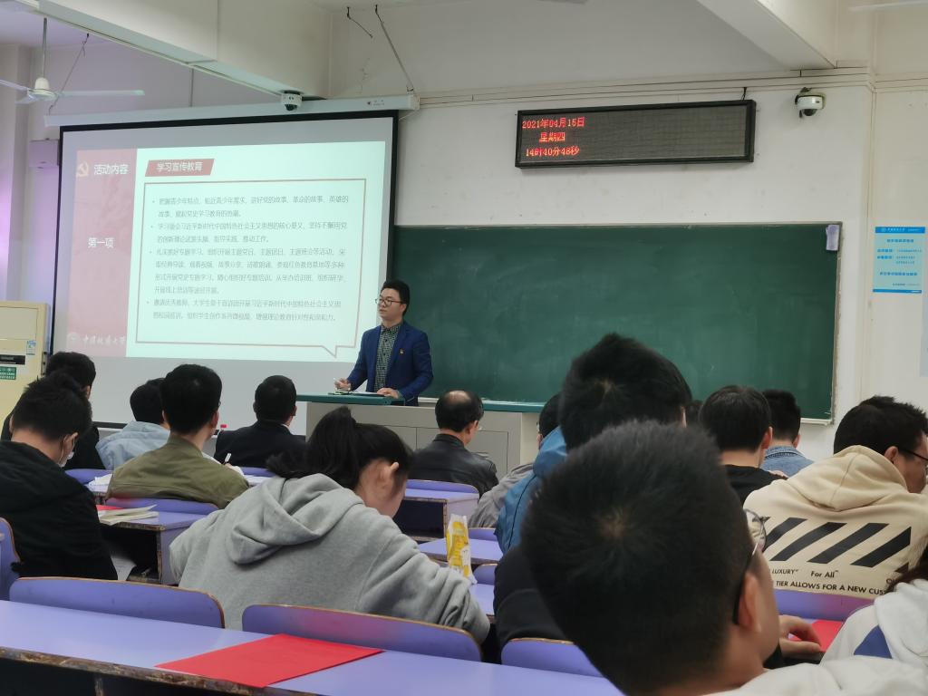庆祝建党100周年和党史学习教育学生活动实施方案》进行了详细解读。一要开展好学习宣传教育活动,坚持不懈用党的创新理论武装头脑、指导实践、推动工作。二是开展好社会实践类活动,引导青年学生传承红色基因,践行初心使命,切实为身边师生办实事、解难题。三是开展好以评促建活动,做好优秀典型选树工作,营造浓厚创先争优氛围,发挥榜样引领带动作用。