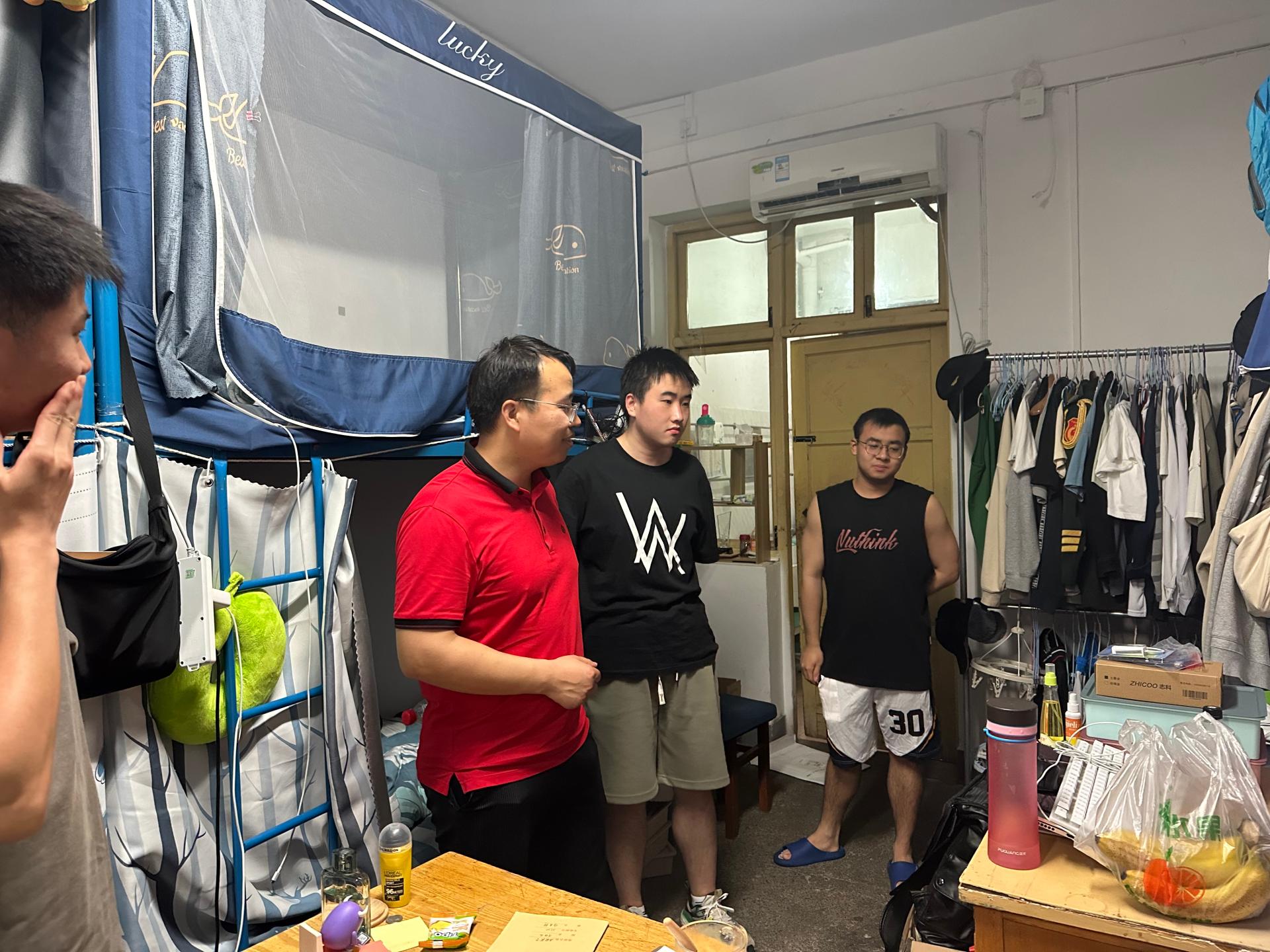 走访宿舍过程中,学院领导老师们分批来到不同年级的学生宿舍和实验室,与自动化学子进行亲切的互动交流。