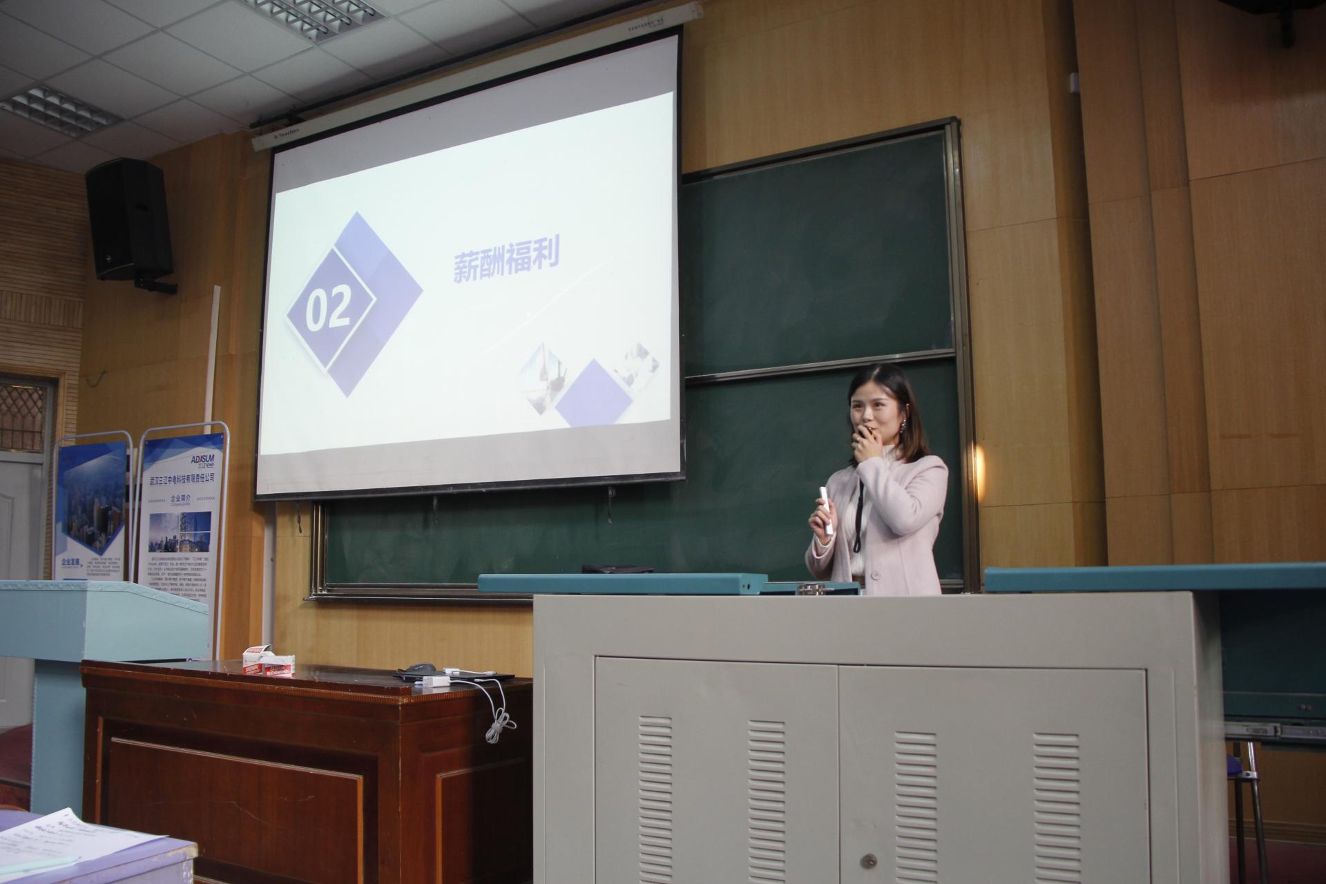 首先,三江中电总经理助理韩总从专业技术角度给同学们进行分享,针对公司开发的产品和业务为同学们介绍理论知识在企业中的实际应用,从输变电在线监测、物联网系统建设和人员技能需求三个方面展开,详实丰富,现场同学们积极提问,与主讲人展开专业交流,现场气氛热烈;随后HR李佳为同学们详细介绍了三江中电公司情况、成人色情以及岗位介绍,帮助同学们了解市场需求。