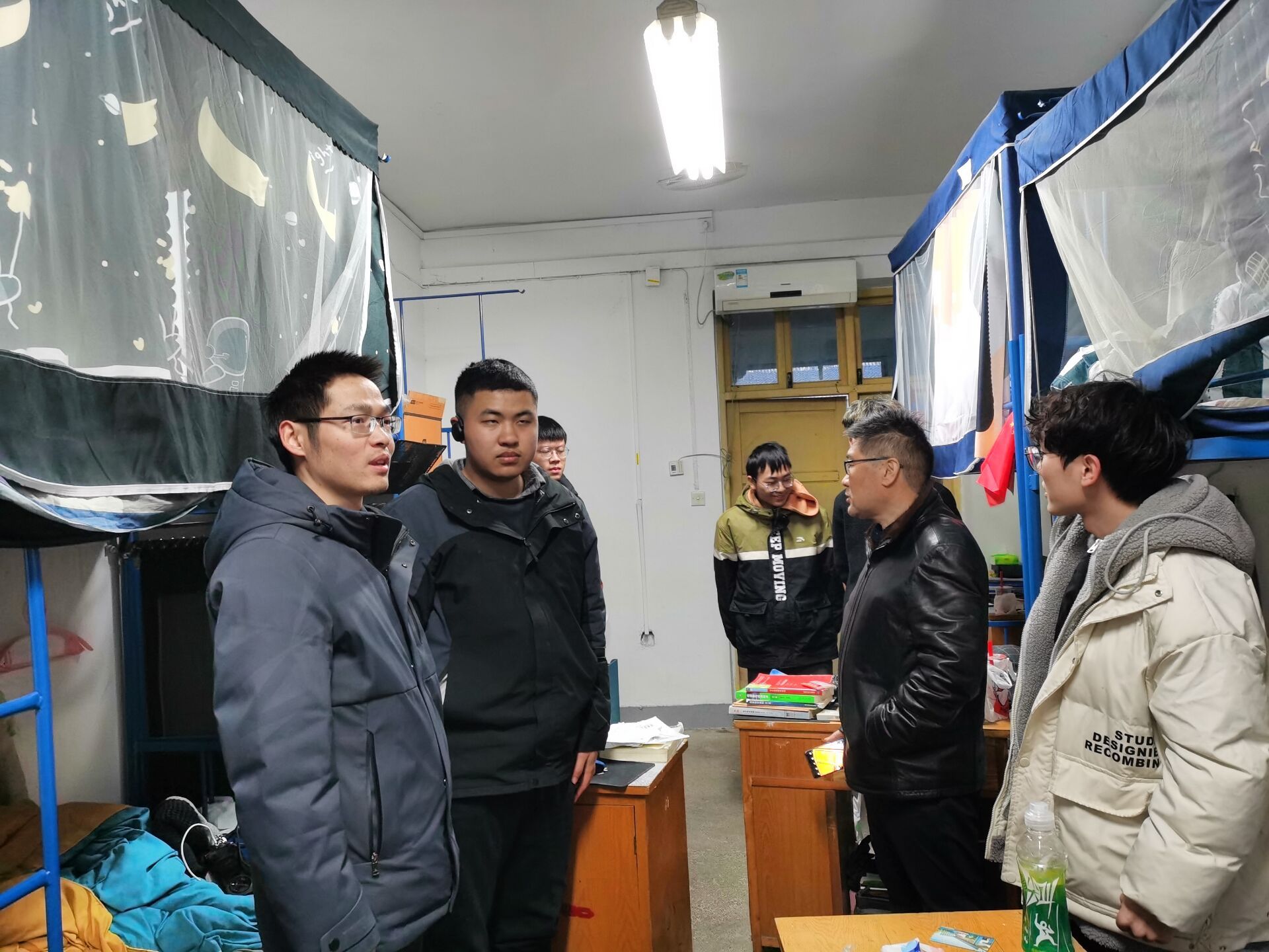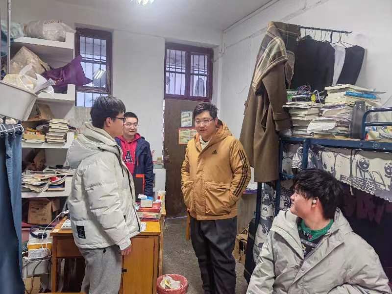 在师生之间的亲切交谈中,同学们积极分享在假期的见闻以及生活状态,老师们关切询问学生家庭是否遭受暴雪、冻雨等极端天气影响,主动倾听了同学们的心声和需求,并在思想道德、生涯规划、行为作风、生活作息和心理健康等方面进行了进一步的指导和关怀。老师们叮嘱大家尽快调整学习状态,明确自己的人生目标,科学进行生涯规划,做有远大的理想、有高超的本领、有勇于担当民族复兴大任的责任感和自信心的时代新人。同时督促自动化学子养成良好的生活习惯,注意个人卫生和宿舍用电安全,生活中提高警惕,养成防诈骗意识。走访当天恰逢全国研究生招生考试成绩公布,行至2020级本科生宿舍时,老师们亲切询问每一位考研学子的备考院校及考试情况,了解毕业生们的就业去向与未来规划,勉励同学们要保持乐观的心态,积极面对未来的挑战。