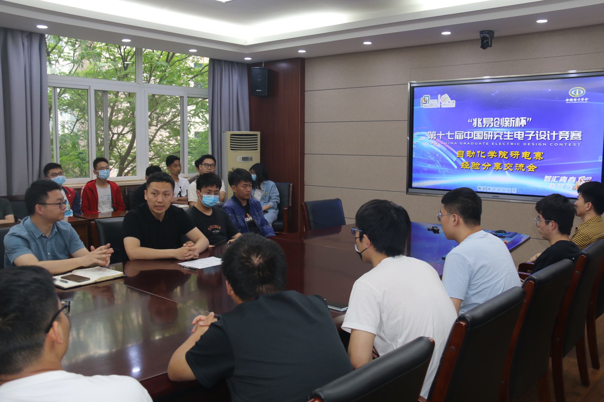 召开第十七届中国研究生电子设计大赛经验分享交流会。学院兼职辅导员阮班铭主持会议,院党委副书记王向东、团委副书记黄兰华、往届优秀队长王晓斌、梁昊和李宁以及本届参赛队伍部分成员参加会议。