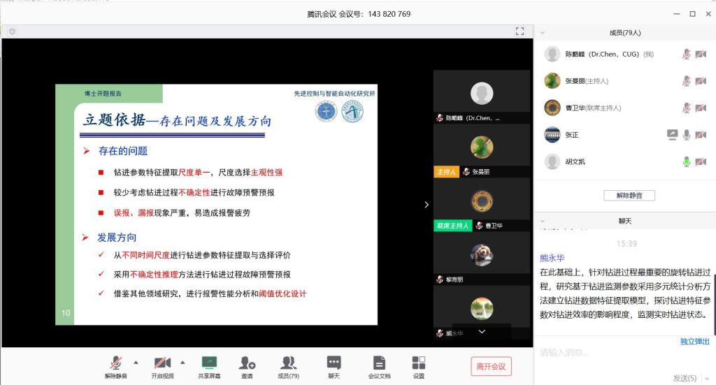 第一期线上研究生开题与文献综述报告顺利举行。研究生院吴堂高副院长、学院相关研究生导师和研究生等70多人参加。博士研究生马斯科、范海鹏、张正完成了开题报告,博士研究生闫泽、张曼丽完成了研究方向文献综述报告。此次采用腾讯会议方式,汇报人通过电脑客户端共享屏幕,其他参会人通过终端设备参会。整个过程秩序良好,汇报画面和语音清晰,评委老师提问有针对性,确保了报告顺利完成。