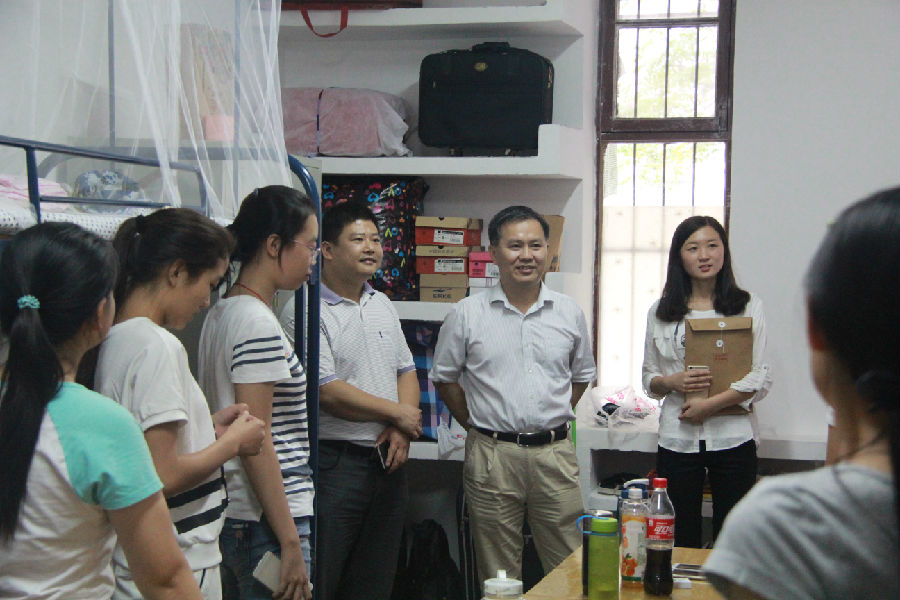 院长吴敏、副院长王广君、副院长金星、党委副书记何建新等学院领导和老师分两组对新生寝室进行了走访。