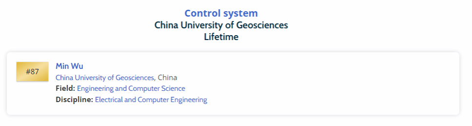 吴敏教授成功入选,位列全球第87位。