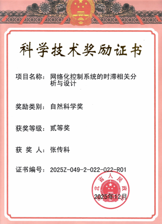1月4日上午,湖北省科技创新大会召开,公布了《湖北省人民政府关于2025年度湖北省科学技术奖励的决定》。成人色情 张传科教授团队“网络化控制系统的时滞相关分析与设计”项目荣获湖北省自然科学奖二等奖。向张传科教授团队表示祝贺!(通讯员:张静)