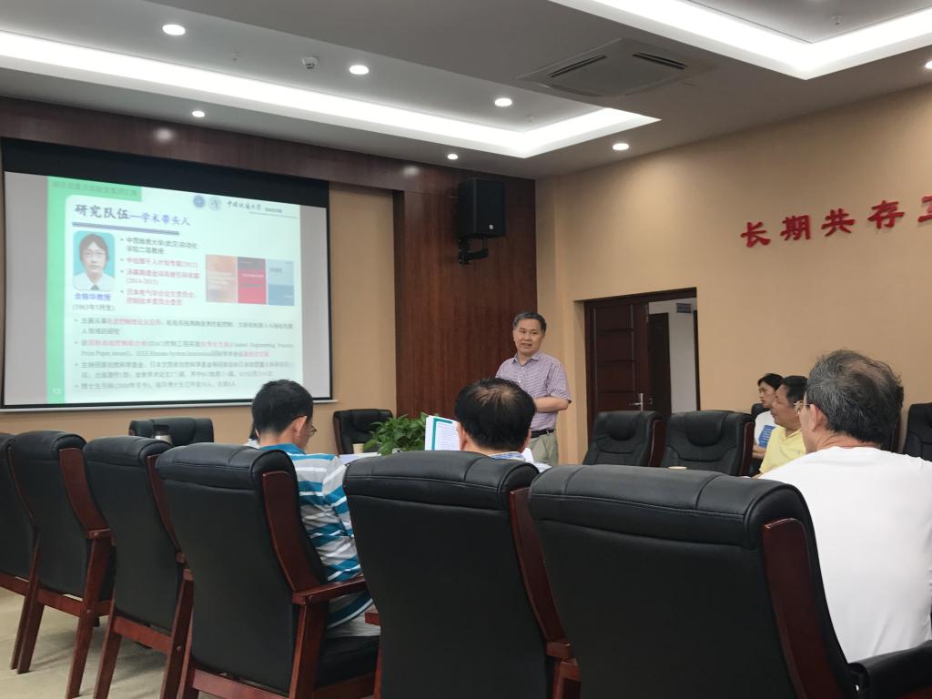 6月14日上午,受省科技厅委托,第三方评估机构和专家组对依托成人色情 建设的复杂系统先进控制与智能自动化湖北省重点实验室(简称“实验室”)进行现场检查。在校科发院常务副院长胡圣虹,实验室主任、成人色情 院长吴敏,院党委书记董浩斌等领导陪同下,专家组分别参观了实验室下辖的智能系统技术、新能源控制技术、智能地球探测仪器与信息处理、光电技术与仪器、计算智能与信息处理、智能机器人等科研实验室,重点检查了设备仪器、环境建设和管理运行等情况,查阅了实验室学术委员会会议、开放基金、科研成果和管理制度等方面的有关资料。