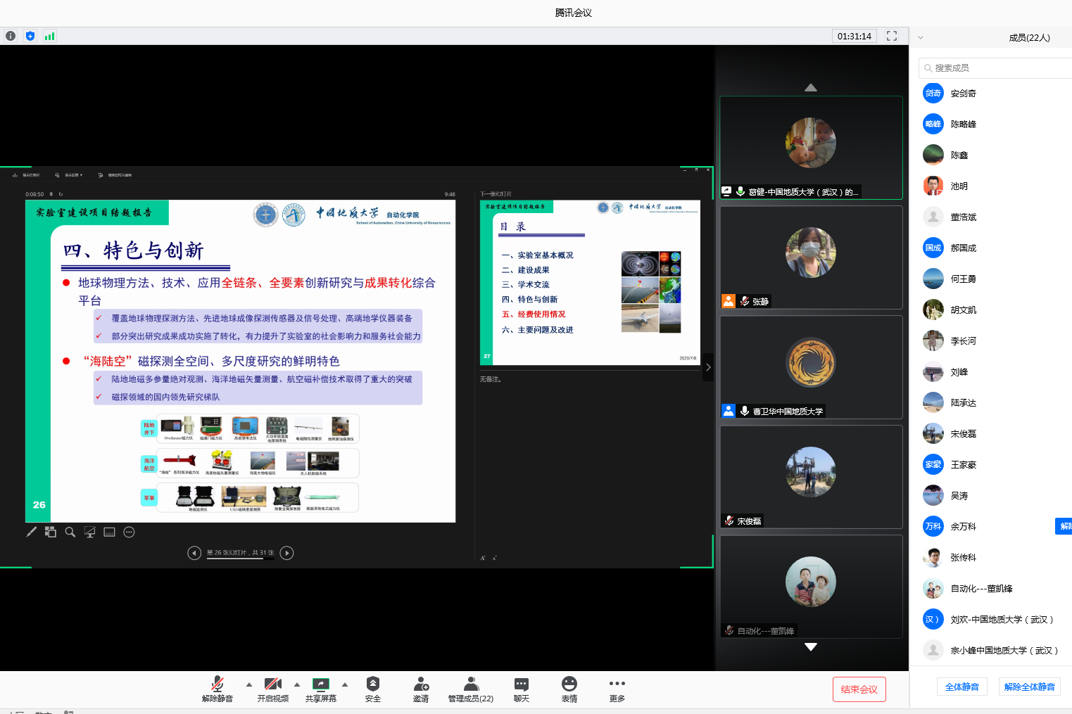2020年7月8日上午,成人色情 召开复杂系统先进控制与智能自动化湖北省重点实验室(以下简称重点实验室)实验室建设、开放基金项目结题验收会议。会议采用腾讯会议方式举行,学院党政负责人、院学术分委员会成员、省重点实验室和开放基金负责人及其成员参加了验收会议。