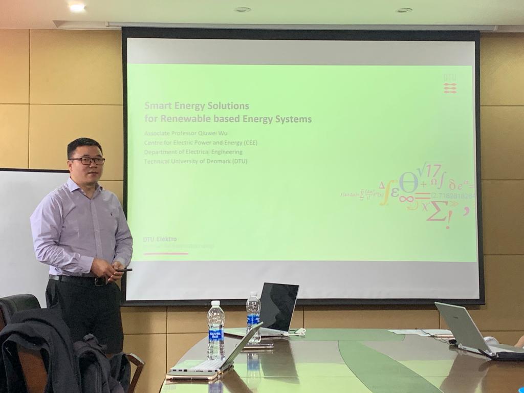 吴秋伟副教授的报告题目为《Smart Energy Solutions for Renewable base Energy Systems》。他介绍了丹麦能源的发展趋势及其结构,分析了当前能源结构下对于储能和耗能带来的困难和挑战,介绍了分布式结构对于控制带来的新问题。他还介绍了Power2Gas技术,并对其在未来能源系统中的技术经济可行性进行了探讨。