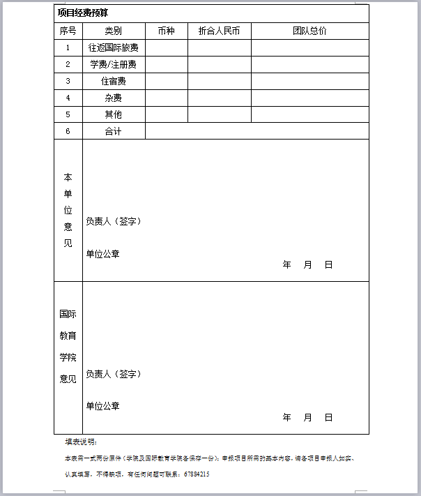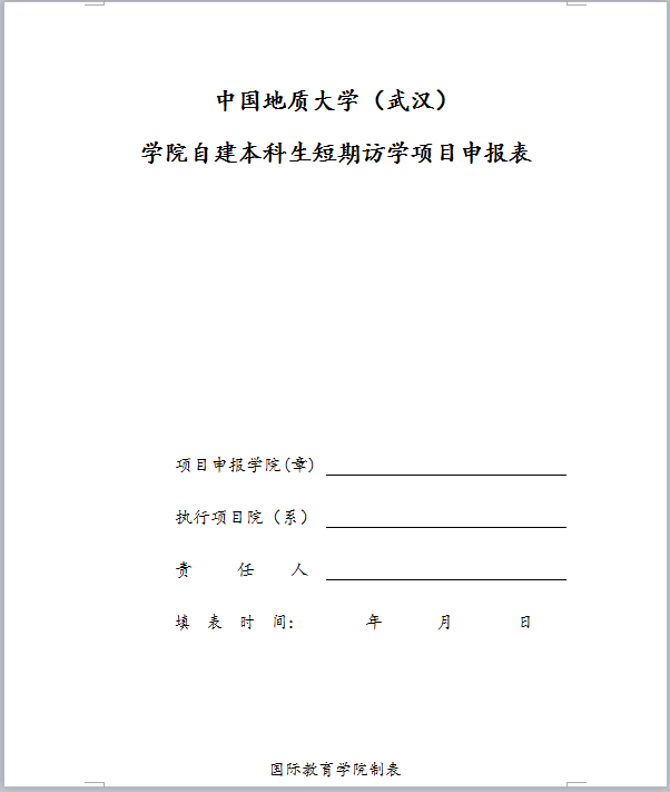 4.申报方式:填写自建本科生短期访学项目申报表,学院负责人签字盖章后交至国际教育学院0218办公室;申请表格下载地址为国际教育学院网站(海外访学栏目-资料下载)