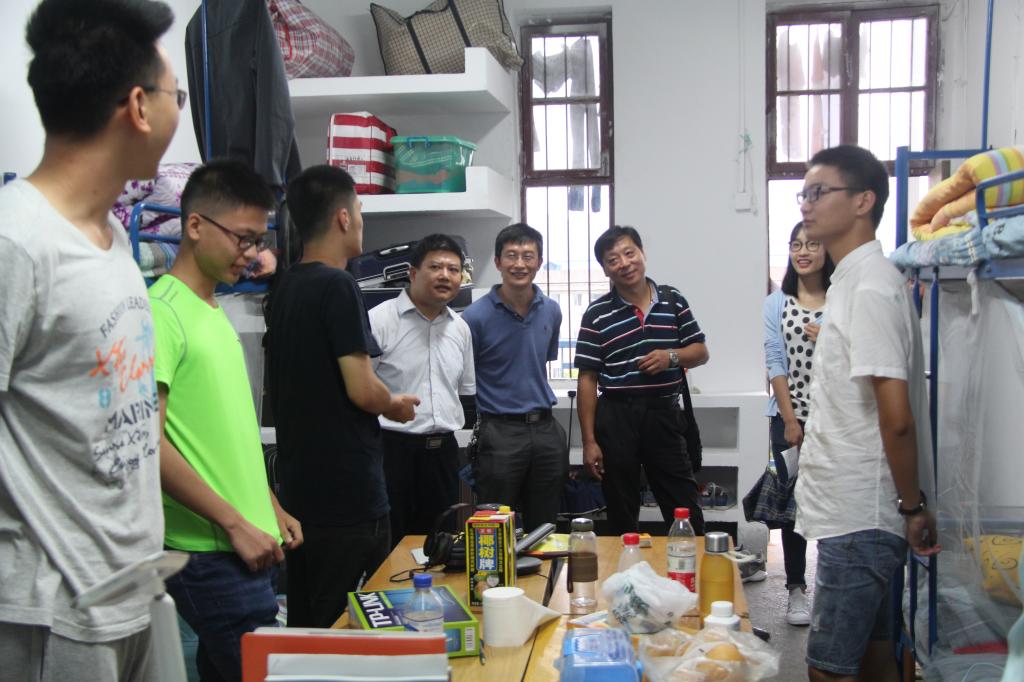 下午16时,院领导先后前往女生宿舍54栋和男生宿舍51栋走访2017级新生。走访过程中,老师们主要从生活和学习两个方面给予新生关怀和建议。生活方面,老师们主动关心新生的住宿情况,建议新生要规律作息、保持好宿舍卫生、搞好室友间关系,并特别强调新生要注意防盗防骗、加强自我保护意识。学习方面,老师们强调大学学习和中学学习的差异性,要重视学习自主性,要保留高中时的努力与干劲。同时他们建议新生合理安排时间,在大学中多去教室,图书馆,实验室学习,掌握好专业知识,为日后的科研和工作做好准备,切忌沉迷于游戏,荒废大好时光。