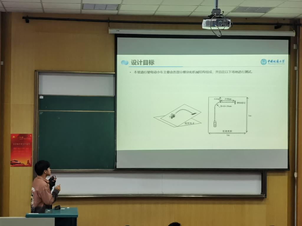 在答辩环节,参赛的八组同学对自己的参赛作品进行讲解,具体说明自己的创作目的、制作原理、应用前景等,参赛作品选题广泛,涉及机器人、非接触式测量、控制等多个热门领域,参赛选手们理论与实践相结合,部分团队展示了自己的实体研究成果,给我们带来了精彩的展示: