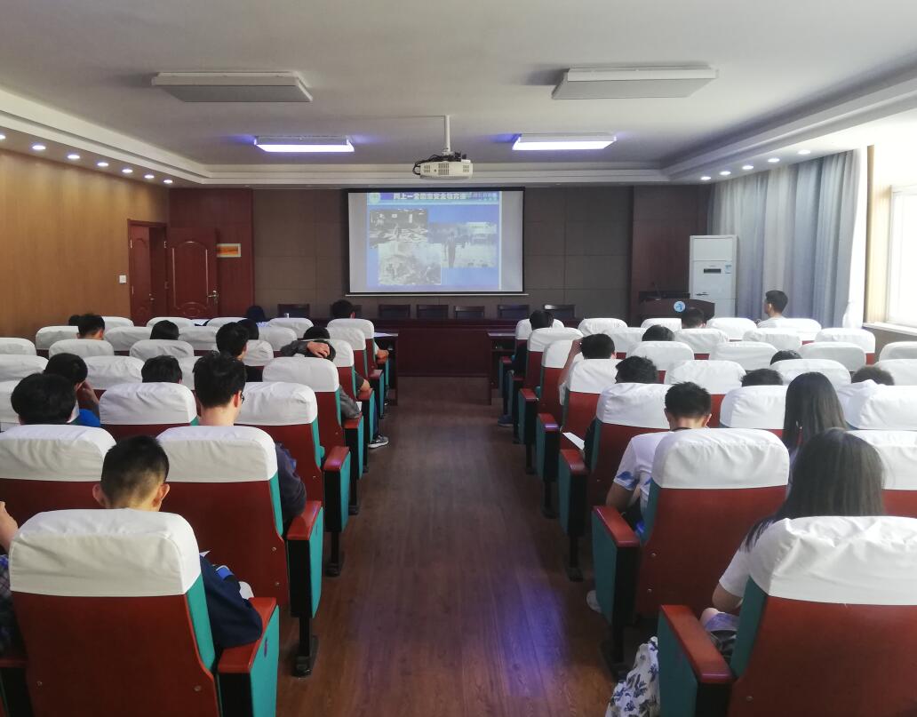 学生干部集体观看《坚持总体国家安全观,着力防范化解重大风险,喜迎中华人民共和国成立70周年和第七届世界军运会》视频课程。