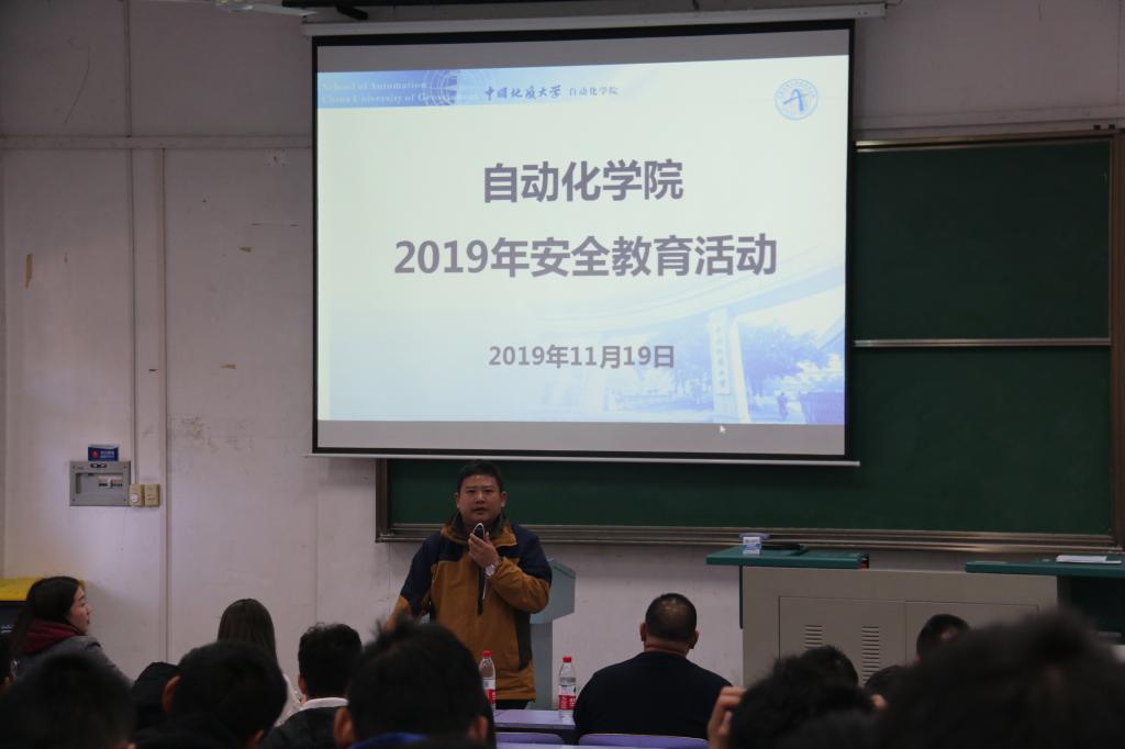 2019年安全教育活动”。校保卫处副处长单红峰,校保卫处消防科科长周日恒,学院党委副书记何建新,学院辅导员许彦、李敏出席了本次大会,会议由许老师主持。