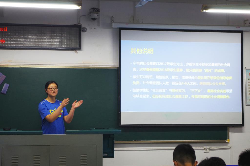 辅导员刘一荻以及2017级各班干部和社会调查团队负责人参加本次会议,刘一荻老师主持会议。