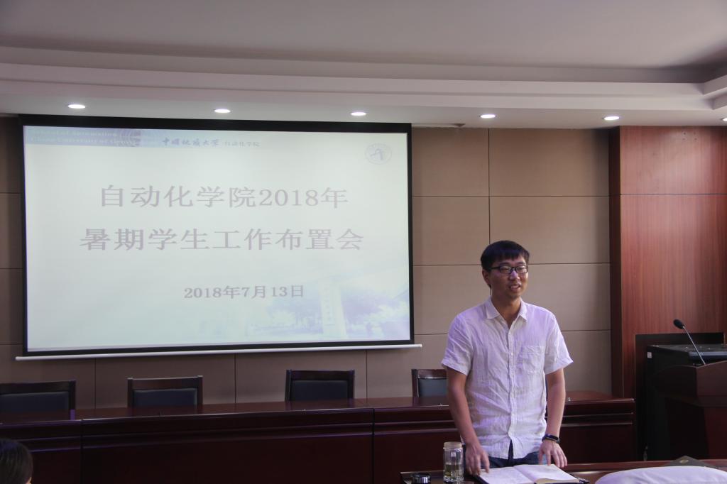 2018年暑期学生工作布置会在信息楼310报告厅召开。党委副书记何建新,团委书记谭文伦,辅导员许彦、刘一荻出席会议,许彦老师主持会议。