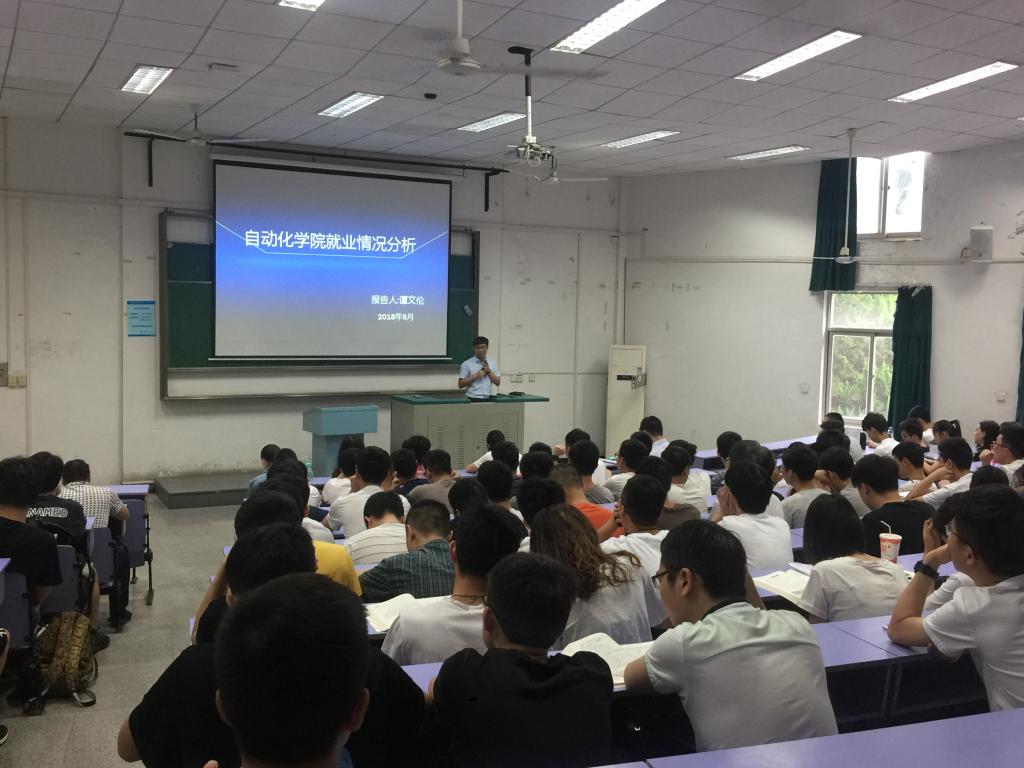自动化专业和测控专业的就业率保持在较高水平;毕业生平均薪资比较可观。毕业生就业去向比较广泛,包括IT、交通、环境、能源行业等,充分体现了本院宽口径的专业特点;鼓励同学们认真学习专业知识,提高自身能力,找到理想工作。谭老师还谈到了就业选择问题,指出就业选择时往往考虑的因素很多,从这几年的情况来看,薪酬高低对于一些毕业生已不再是首要考虑的因素,地域、工作舒适度、未来发展等因素也被着重考虑。谭老师分享了近几年来学院老师走访企业的情况,提醒学生要充分利用学院发展起来的就业资源,积极联系已就职的师兄师姐,增加就业机会。