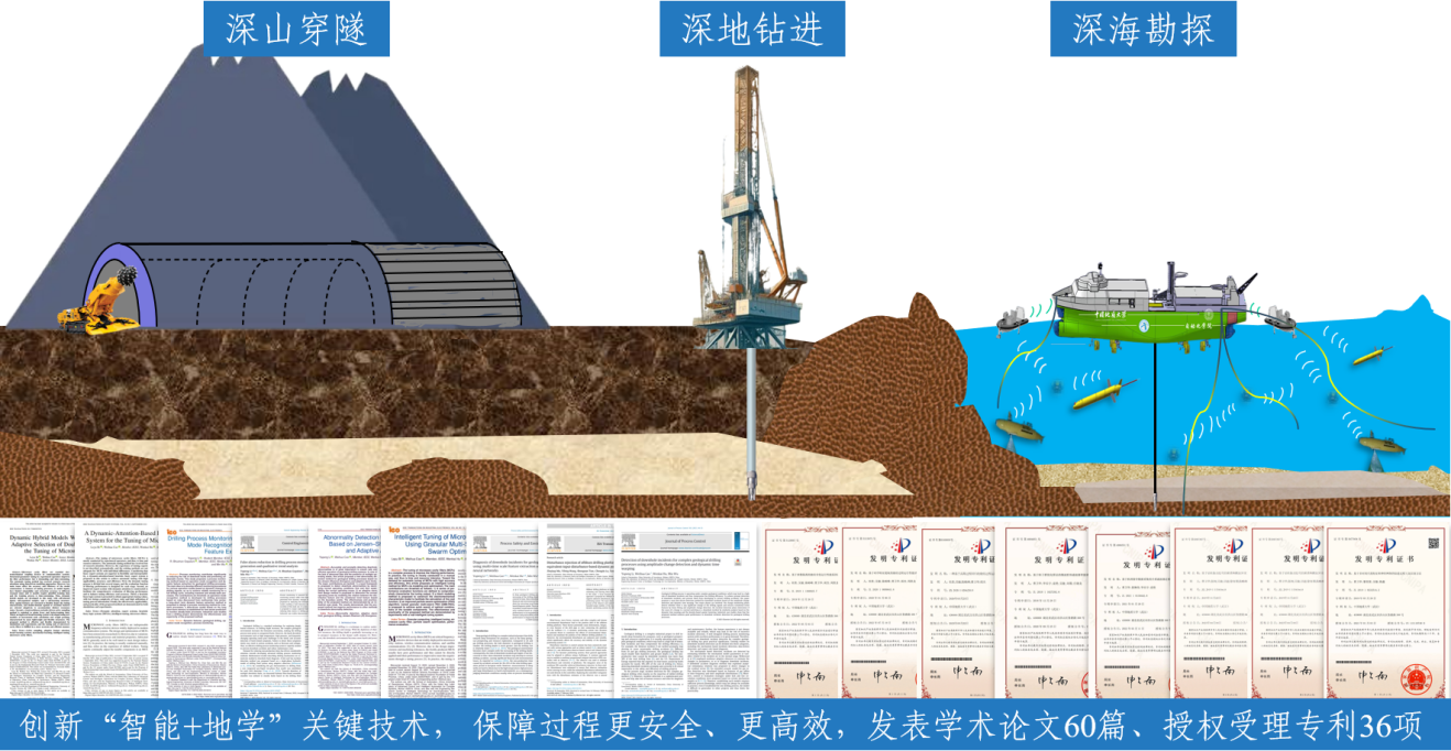 在校本硕博学生为主体构成,将创新化作青春远航的动力,用创业凝聚青春搏击的能量。瞄准人工智能世界科技前沿,聚焦“四个面向”和“新一轮找矿突破战略行动”国家重大战略,在“入地、下海、穿山”的地球科学关键领域中创新“智能+地学”关键技术,助力“深地钻进、深海勘探、深山穿隧”过程更安全、更高效。近五年,团体内发表领域高水平学术论文60篇,授权受理国家发明专利36项;创立“人工智能+”科技公司5个,获“互联网+”“挑战杯”等国家级创新竞赛奖励17项。团体连续三年涌现杜胜、毕乐宇、黎育朋等三名“中国大学生自强之星”,相关事迹被央视新闻、人民日报、新华网、光明日报、中国青年报、全国高校思政网、湖北日报等省级及以上主流媒体报道50余次。
