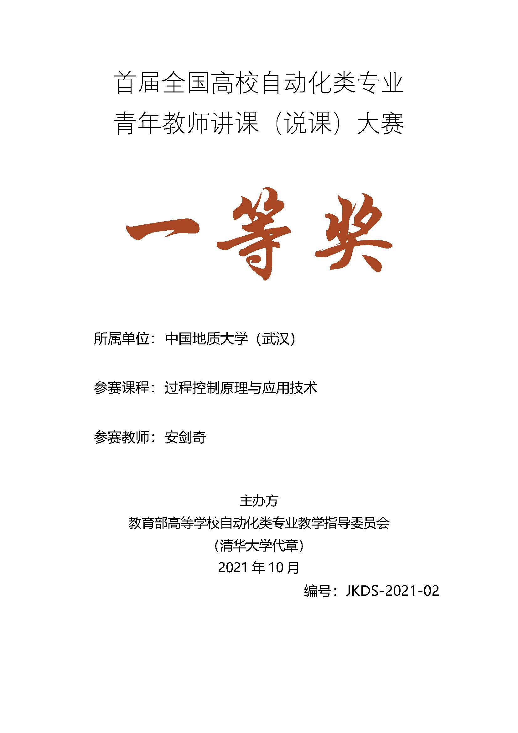 教师安剑奇教授获得全国一等奖。