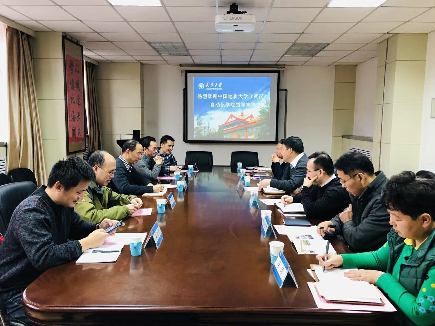 党委书记董浩斌、测控系主任李志华、教师代表宋恒力、信息实验中心教师王宏、余志华等一行5人赴天津大学精密仪器与光电子工程学院就本科教学工作开展调研。教育部高等学校仪器类专业教学指导委员会主任、精仪学院院长曾周末,副院长胡晓东,精仪系主任吴斌、副主任徐宗伟、王鹏,学院秘书李清出席了交流会。会议由精仪学院院长曾周末教授主持。