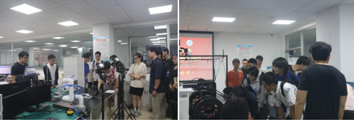 的实验室,在“小派”导览机器人、研究生学长学姐们的讲解下,同学们具体地了解了每一个实验室的研究方向及研究成果,感受到了学院的研究氛围,对学院产生了浓厚的兴趣。