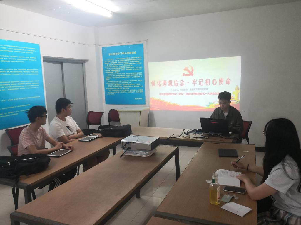2019926日,自动化一大学生党支部全体党员在大学生学习支持中心开展“我和我的祖国”主题党日活动,本次主题党日活动由党支部书记白春辉同志主持。