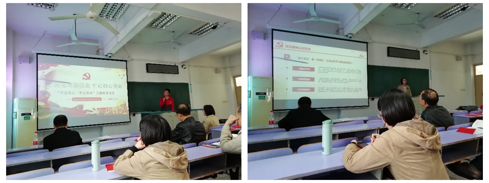 首先,在测控系及研究所党支部书记晋芳同志的组织下,全体党员重温入党誓词,教师党员代表袁艳同志和学生党员代表朱春源同志诵读党章第三章,带领大家学习“党的中央组织”,并缴纳了201910月的党费。