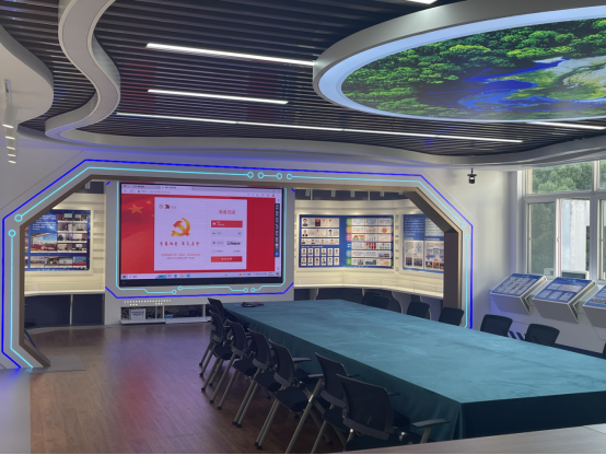 党建文化室,控制科学与工程博士生第一党支部副书记郭琳炜现场演示了学院自主研发的“青春向党”智慧党建系统。