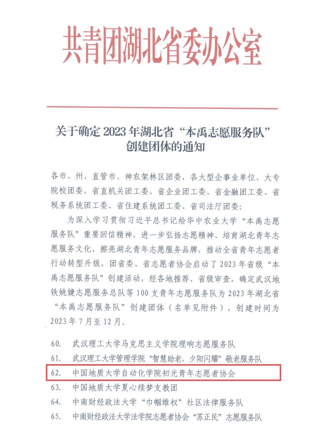 近日,团省委、省志愿者协会印发了2023湖北省“本禹志愿服务队”创建团队(名单),成人色情