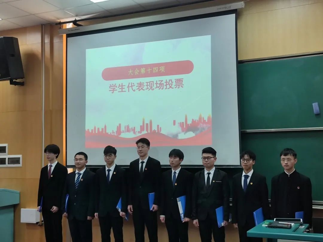 第八次学生代表大会于教三110召开。此次大会由2021届主席团成员陈力子主持,学院党委副书记王向东老师,团委书记黄兰华老师,辅导员孙静老师、王艺霖老师以及2018级,2019级,2020级,2021级和团委学生会5个代表团参加了本次大会。