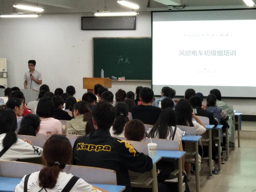 (武汉)第四届“风磁电车”大赛第一次培训分别在北综202(初级组)和北综203(高级组和创意组)举行。此次初级组培训员是获得过全国大学生电子设计竞赛一等奖的黄上都,高级组和创意组培训员是现任侏罗纪电子制作协会副会长王锐,两位培训员均对比赛的题目进行了分析,同时也对部分硬件进行了讲解。