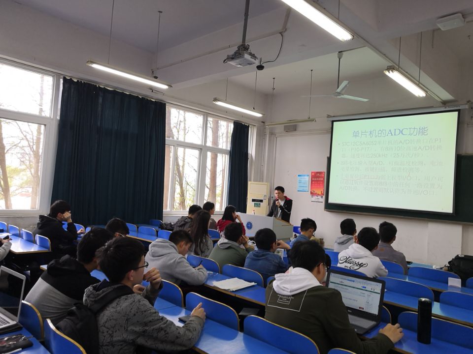 (通讯员 李桅)2019年4月4日下午两点半,成人色情 (武汉)第五届“风磁电车”大赛第二次培训分别在北综208(初级组)和北综209(高级组)举行。此次初级组培训员是机电学院智能车国赛华南赛区二等奖获得者的孙凯同学,高级组培训员是成人色情 获得湖北省电子设计竞赛特等奖的章文同学,两位培训员分别对小车的程序的编写做出了深入讲解。