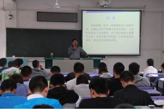(通讯员 胡楠)2016年4月21日下午四点,成人色情 第五十九期党课第六讲在教三楼201举行。本次党课的主题是“共产党员的条件、义务和权利”,由成人色情 党委副书记何建新主讲。