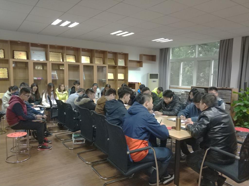 谭文伦老师带领测控二大学生党支部成员学习十九大精神。他强调了学习十九大精神的重要性,建议青年党员在学习习近平总书记十九大报告的过程中应结合自身的专业特点,从报告中发掘与专业相关的内容,并加以贯彻和落实。