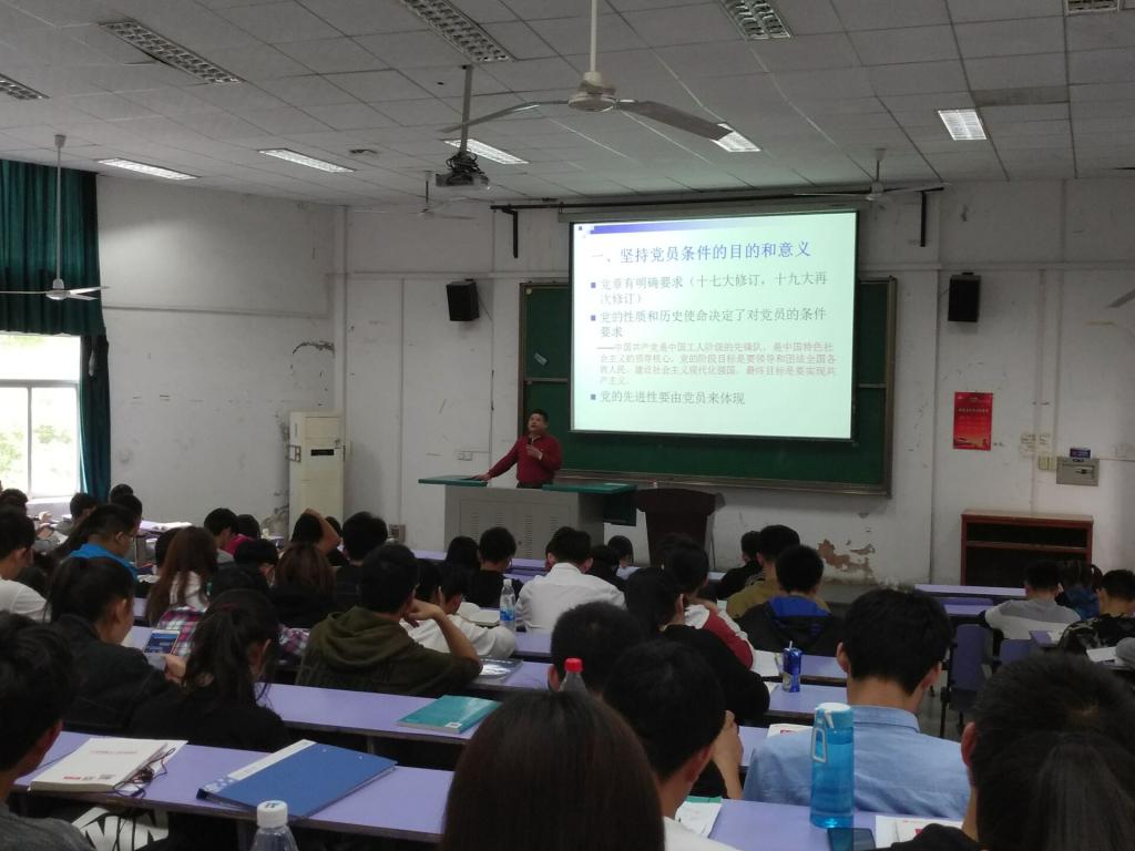 (通讯员 张岚钦)2018年4月26日下午两点,成人色情 分党校第八期入党积极分子培训班党课第八讲在教三楼207举行。本次党课的主题是“共产党员的条件、义务和权利”,主讲人是成人色情 党委副书记何建新。
