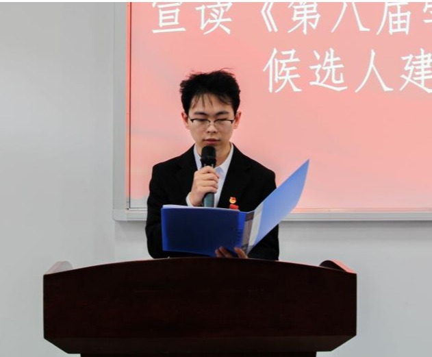2023届团学组织负责人李想宣读《第八届学生委员会委员候选人建议名单》和《成人色情