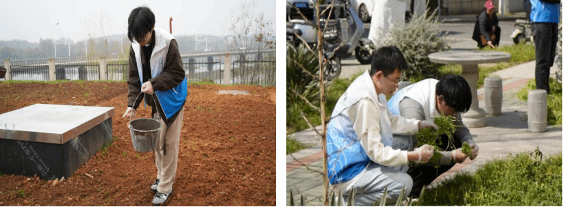 “爱我东湖,美丽地大”系列活动:3月12日,为传承雷锋精神、共建生态文明,在第47个植树节当天,志愿者们齐聚攀岩广场,在后勤老师们的指导下亲手栽下一棵棵树苗,为校园点缀春意。3月20日下午,“初光”青年志愿者协会组织北区除草清洁活动,志愿者们佩戴手套,用铲子清除杂草,春风拂面、绿意盎然,志愿精神在汗水中闪耀。3月22日,是第38个世界水日,“初光”青年志愿者协会联合自动化专业大学生第二党支部开展了一场意义非凡的“爱我东湖,美丽地大”环保活动。志愿者们以实际行动为画笔,两两分工,团结协作,绘就环保的动人画卷。
