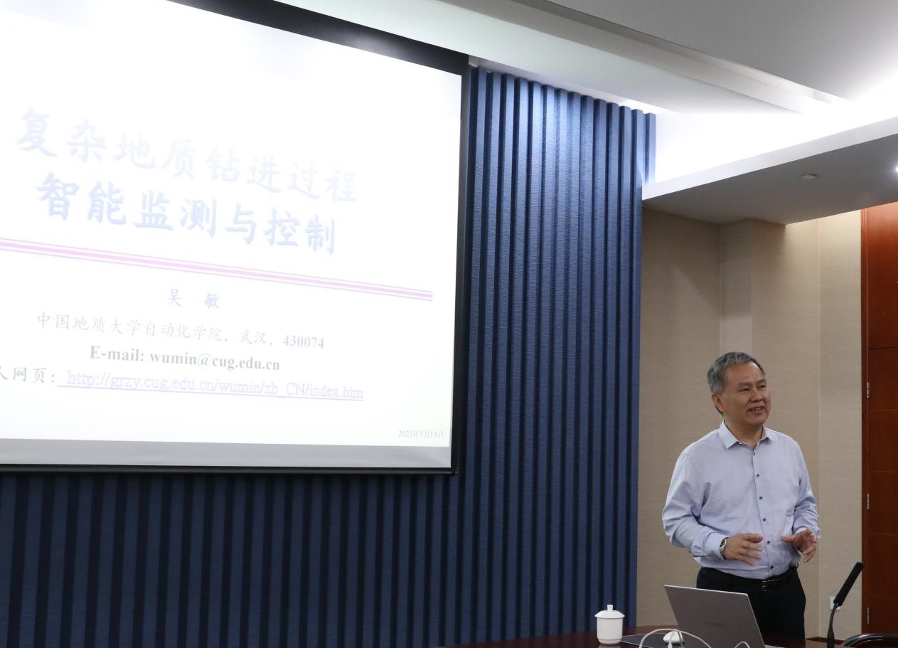 的科研工作。随后,双方就煤炭矿井钻探装备的智能化所面临的技术问题进行了深入的讨论。期间,吴敏教授赠送了新近出版的学术专著——《复杂地质钻进过程智能控制》。