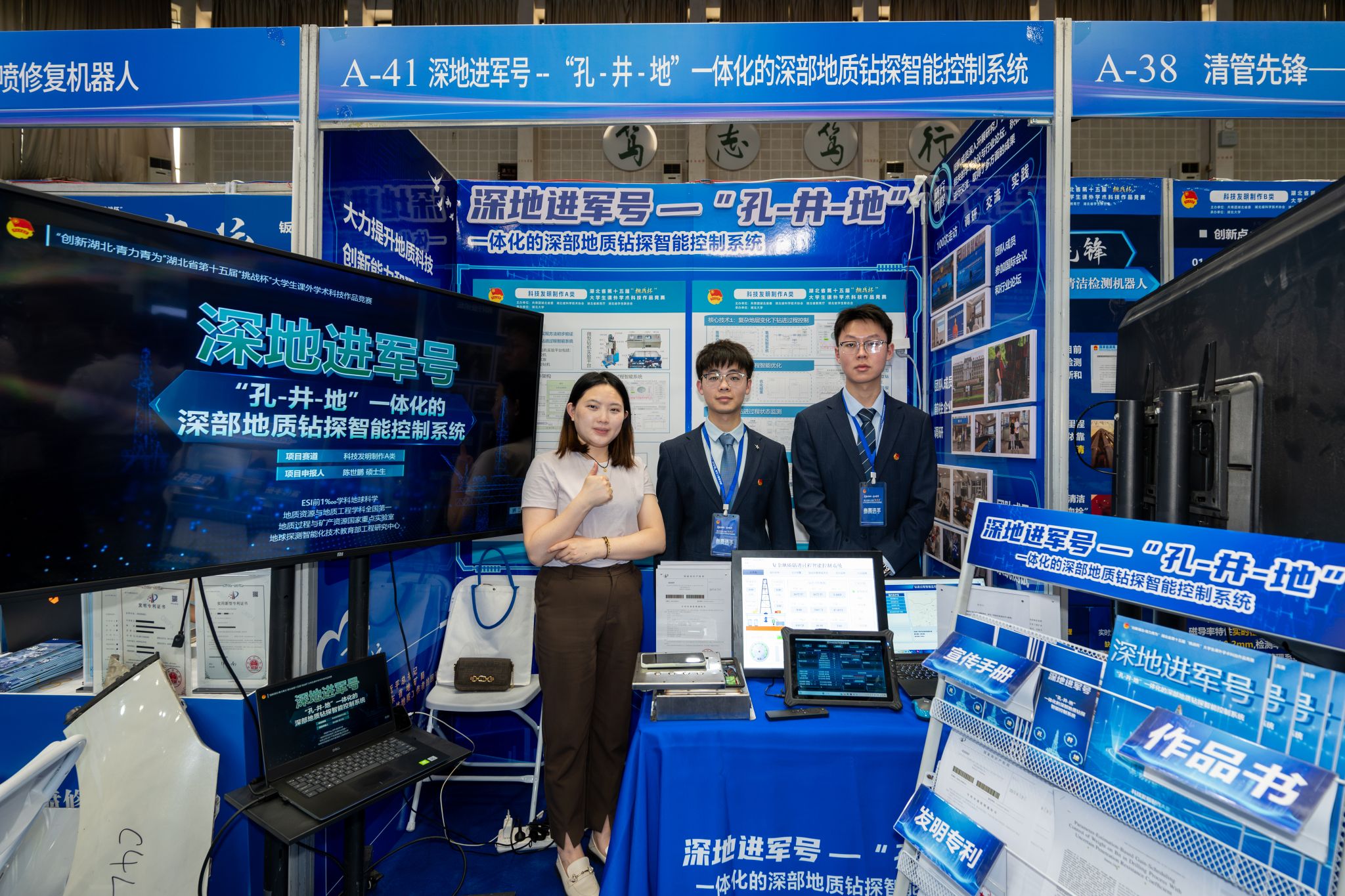 选送“深地进军号”和“蚁探揪净”项目在全省122所高校的1771件参赛作品中表现亮眼,分别斩获一等奖。
