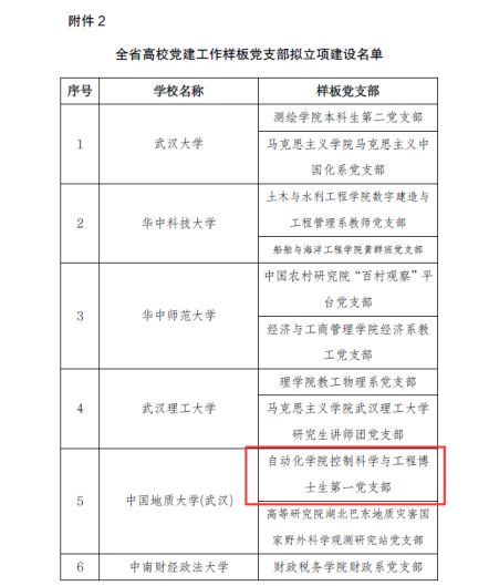 控制科学与工程博士生第一党支部入选湖北省高校党建工作样板党支部