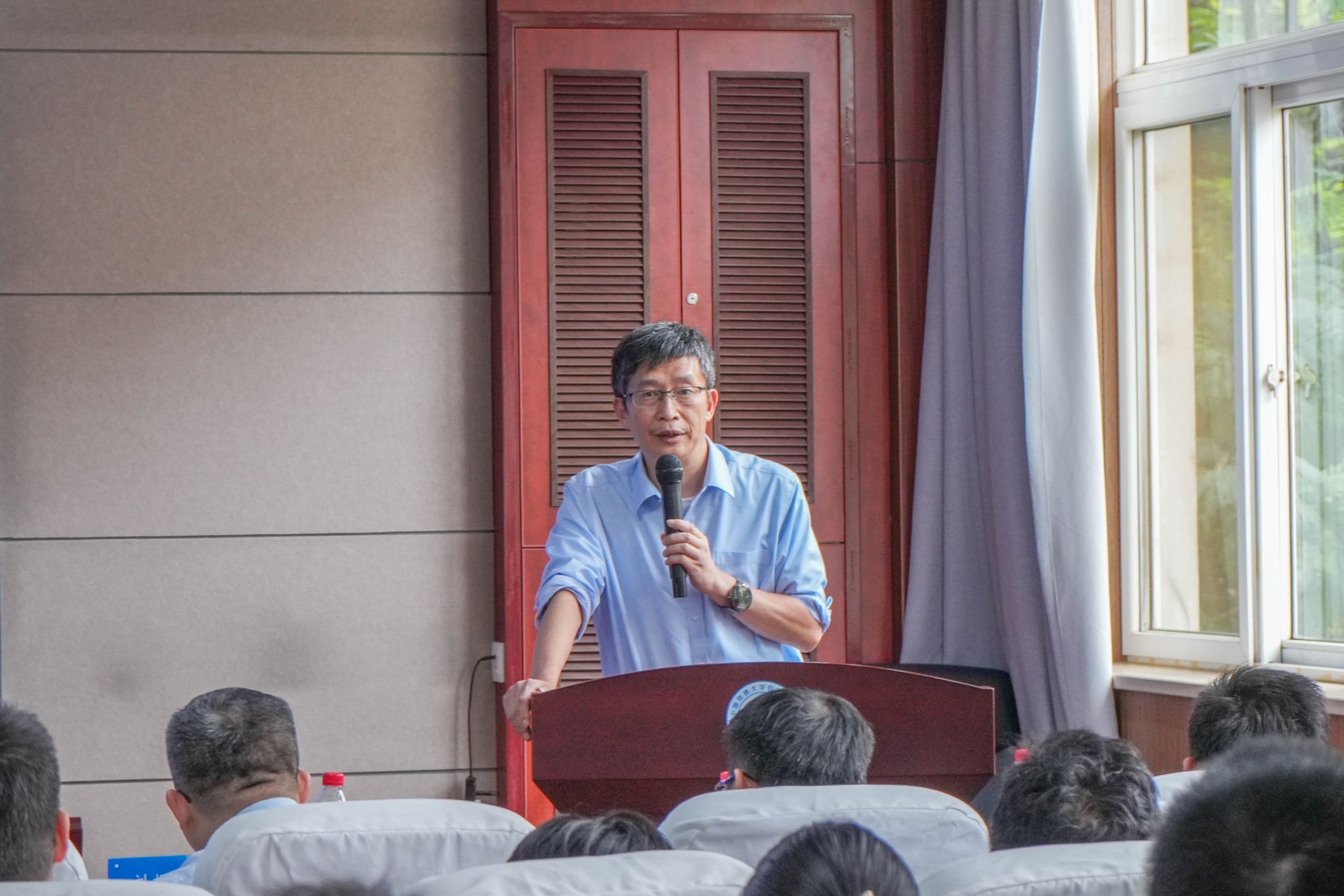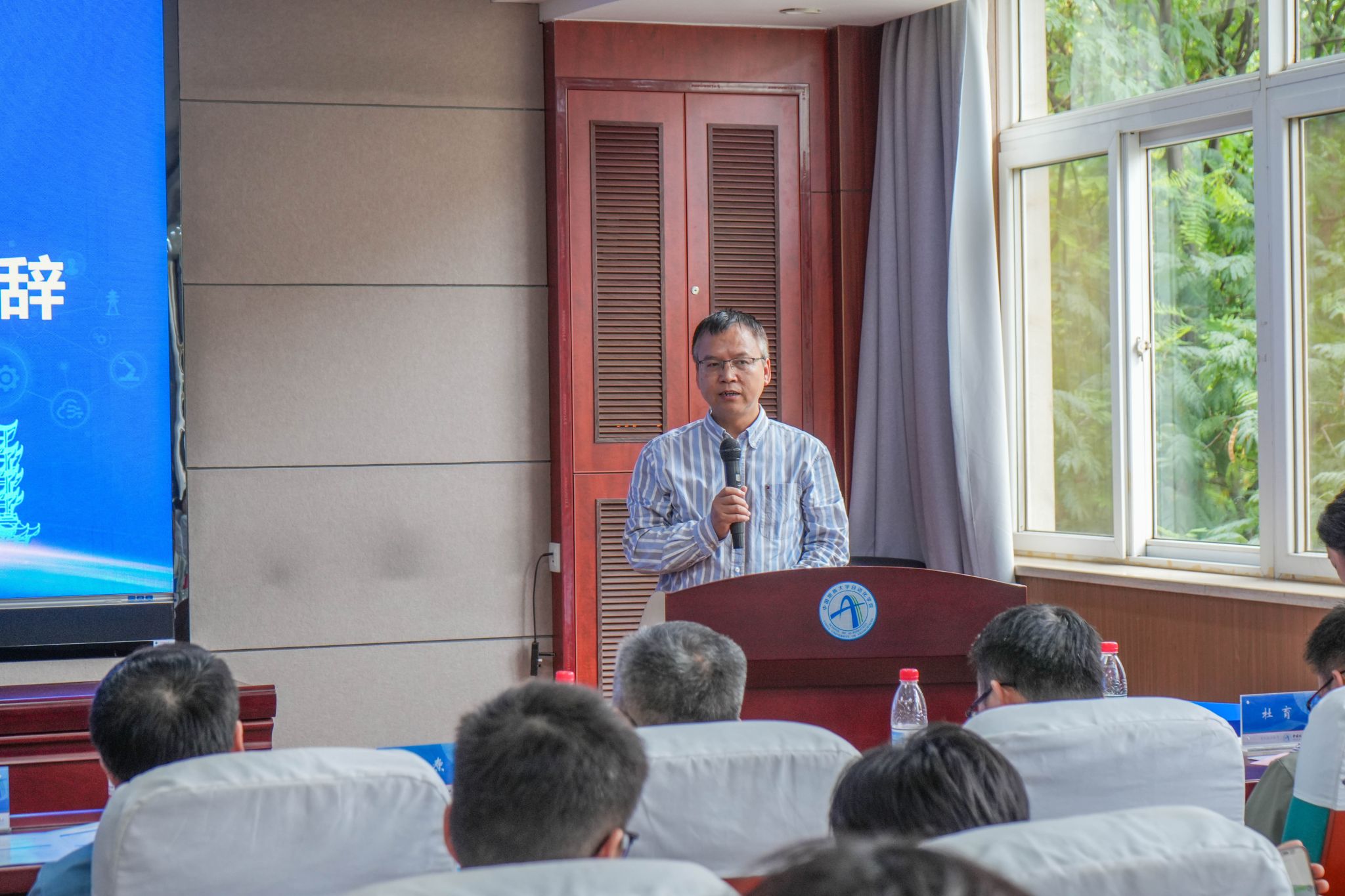 副院长刘振焘教授介绍本届学术年会的日程,本届学术年会9月至12月举行,期间将举办研究生科技报告会、青年学者报告会、研究生国际交流与成果汇报及系列专题学术讲座,构建与朋辈交流、与前沿对话的多层次交流平台。