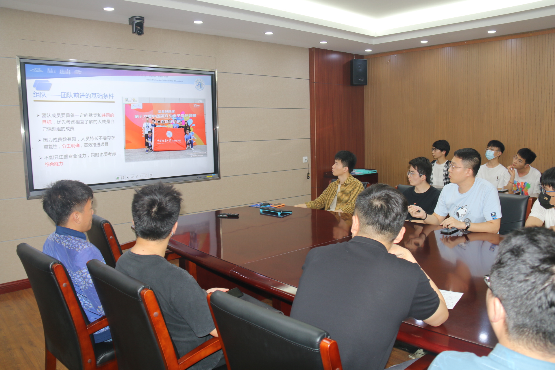 召开第十七届中国研究生电子设计大赛经验分享交流会。学院兼职辅导员阮班铭主持会议,院党委副书记王向东、团委副书记黄兰华、往届优秀队长王晓斌、梁昊和李宁以及本届参赛队伍部分成员参加会议。