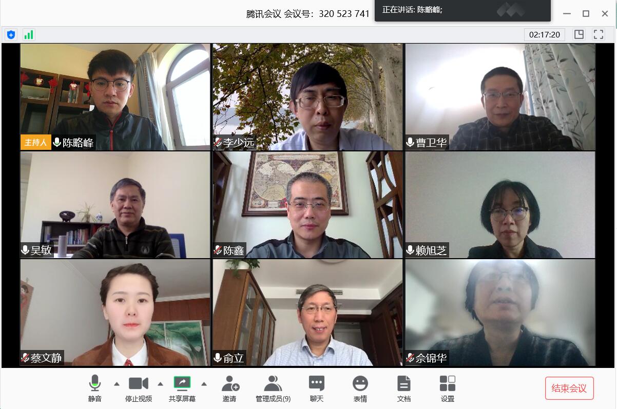 2020年博士研究生答辩批准书》,并提前在学院主页发布答辩公告和答辩海报。答辩秘书在设备调试和无记名投票系统方面做了精心准备,并进行了在线模拟答辩。在答辩过程中,从宣布答辩委员会成员名单,主席介绍答辩程序,导师介绍研究生情况,答辩人报告博士学位论文主要内容,答辩委员会成员就论文有关问题提问、答辩人答问,宣读评阅专家意见以及导师对学位论文的学术评语,答辩委员会评议、无记名投票、宣读答辩决议,到答辩人致辞和视频截屏合影留念,全程交流顺畅,一气呵成,效果良好。整个答辩过程,由专人录音录像,相关人员全程在线督导。