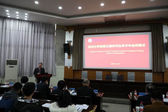 学院研究生会主席孙一仆就第五届研究生学术年会作总结汇报。本届研究生学术年会历时近3个月,由波兰绿山大学Krzysztof Galkowski教授的精彩学术报告拉开序幕,期间成功举办了5场研究生科技论文报告会、3场青年学者报告会、1场研究生国际交流与成果汇报会,并邀请到加拿大阿尔伯塔大学Witold Pedrycz教授、黄彪教授、南非比勒陀利亚大学夏小华教授、香港城市大学陈杰教授、英国布鲁奈尔大学王子栋教授、英国利物浦大学Joseph Spencer教授、大连理工大学王伟教授、清华大学周杰教授等知名专家学者作学术报告,分享学科领域前沿动态,加强学院师生的学术交流。
