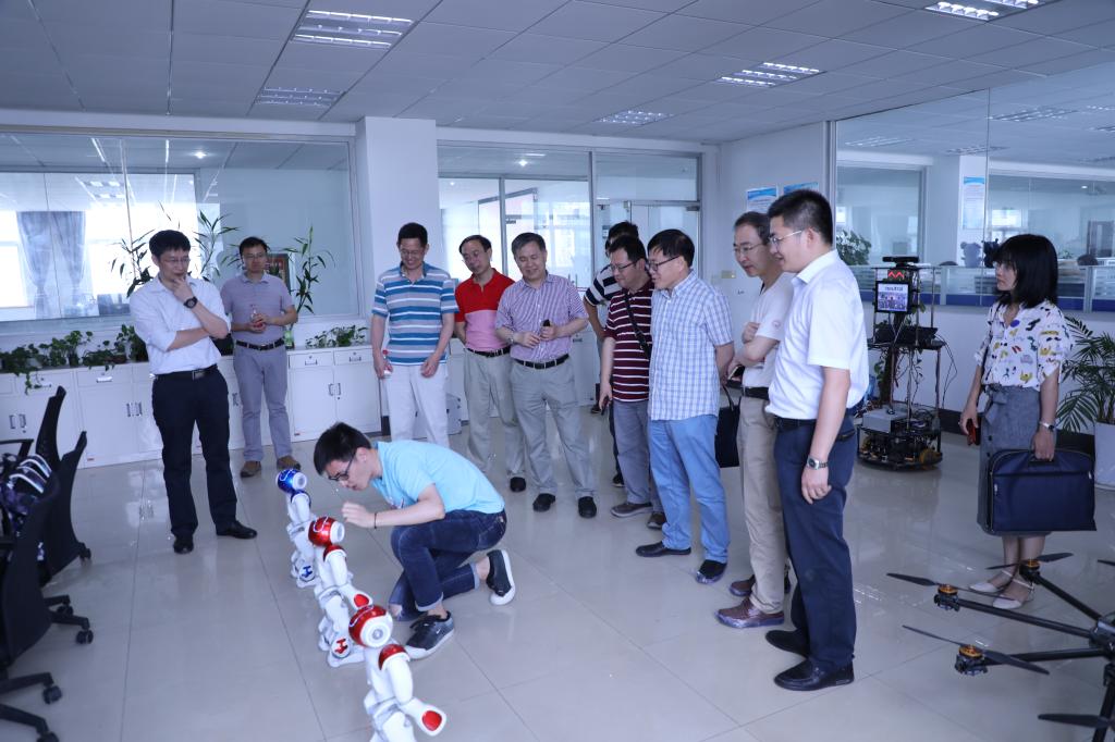 6月14日上午,受省科技厅委托,第三方评估机构和专家组对依托成人色情 建设的复杂系统先进控制与智能自动化湖北省重点实验室(简称“实验室”)进行现场检查。在校科发院常务副院长胡圣虹,实验室主任、成人色情 院长吴敏,院党委书记董浩斌等领导陪同下,专家组分别参观了实验室下辖的智能系统技术、新能源控制技术、智能地球探测仪器与信息处理、光电技术与仪器、计算智能与信息处理、智能机器人等科研实验室,重点检查了设备仪器、环境建设和管理运行等情况,查阅了实验室学术委员会会议、开放基金、科研成果和管理制度等方面的有关资料。