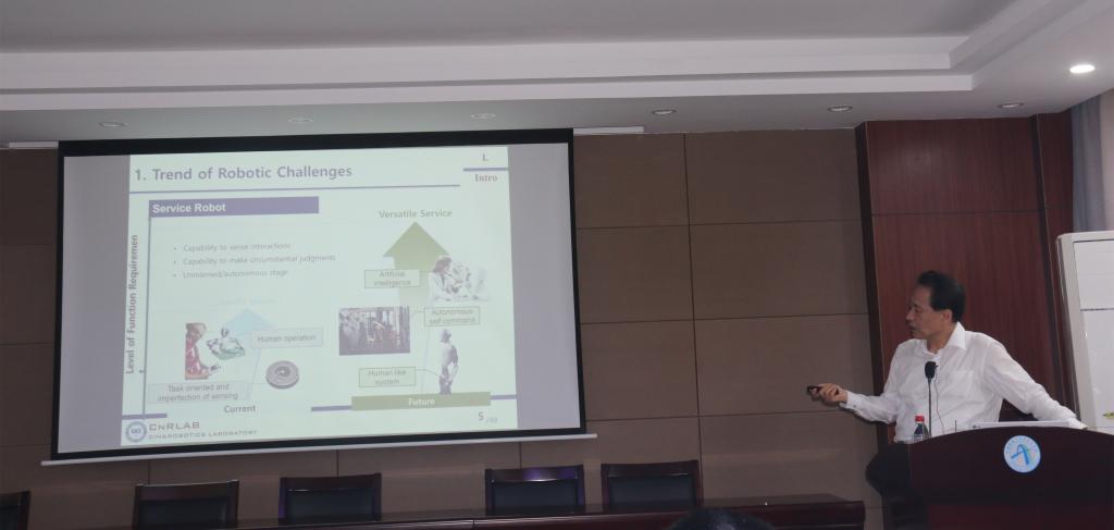 4月26日,韩国汉阳大学韩彰秀教授来成人色情 作了题为《Human-Robot Cooperation (HRC) Technology》的学术报告。